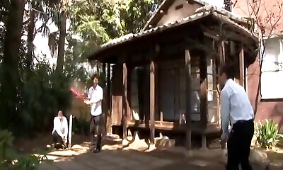 A group of Japanese individuals engage in an outdoor sexual act featuring Sara Saijo, a jaw-dropping and alluring Japanese damsel.